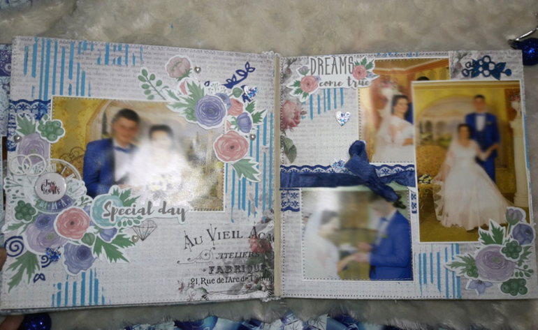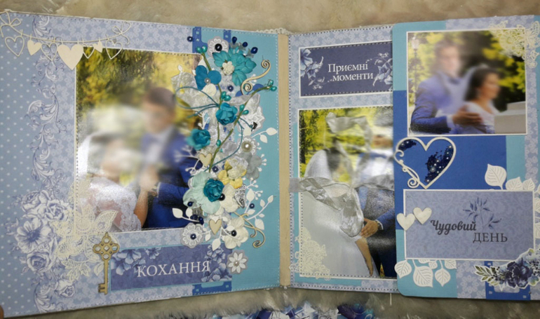 СкрапбукингСделала к НГ для учительницы своей дочери. Свадьба была этим летом и с проффотками работать одно удовольствие.Поэтому я не упустила момент и получила наслаждение от работы) .