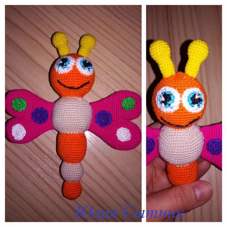 Моя последняя работа бабочка-погремушка по МК Катерины Архиповой.