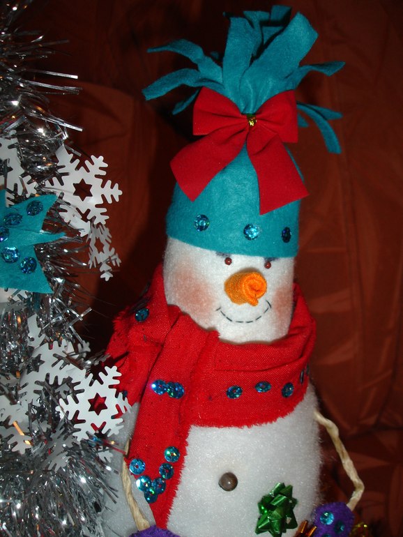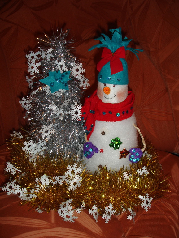 вот такой получился Снеговичок для выставки в детском саду,очень хотелось,чтобы не был похож на других)))особенно нос чтобы не морковкой)))так и вышло)))Снежик конечно не весь из фетра, но фетра много)))))