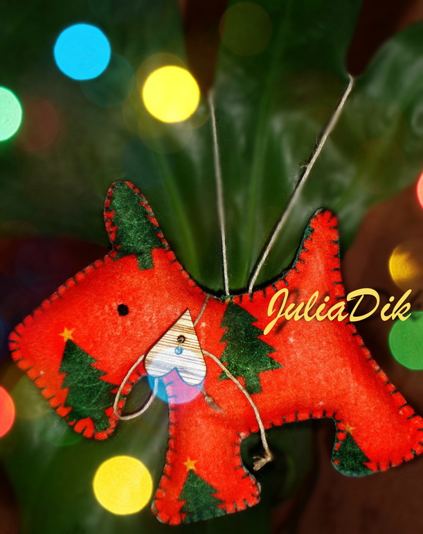 Фетрчестно признаюсь,что я кошатница и совушница)))))))медважатница ещё,лисятница,но уж никак не собачница,но НГ не отменить никак,да и здорово,поэтому нужен символ обязательно,да ещё конечно ручками своими сделанный,поэтому вот и вышел вот такой пёсик,достаточно милый и приятный,обязательно наделаю таких же в подарок и наверное разных цветов,но этот будет-Глава семьи и Родончальник)))))