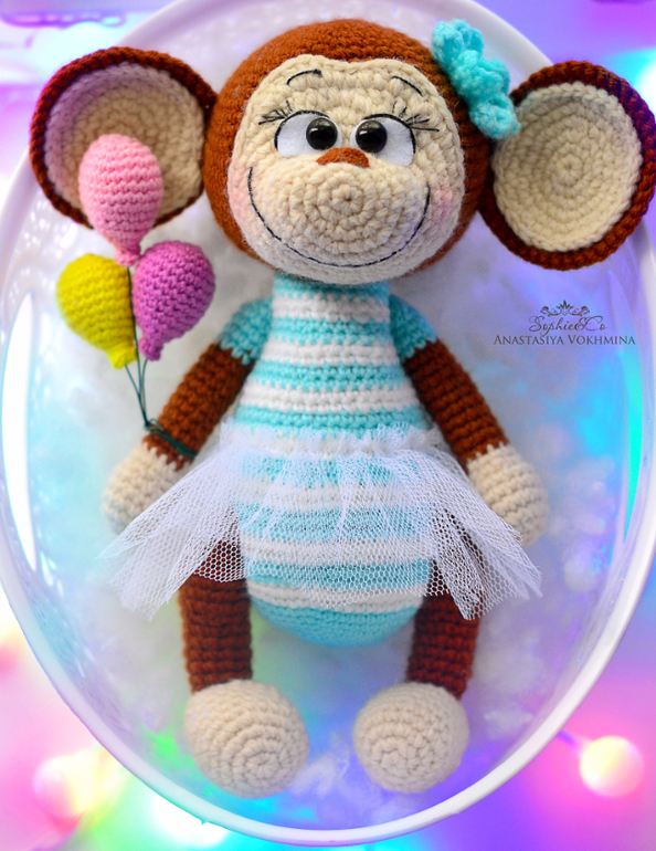 Амигуруми (вязаные игрушки)Всем привет! С наступившим Новым годом всех-всех! Хочу показать Вам обезьянку, которая была подарком под елочкой для одной хорошей девочки.