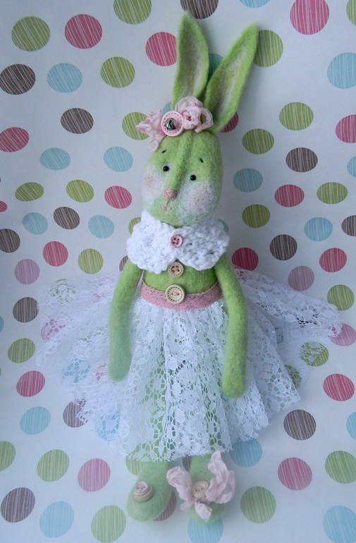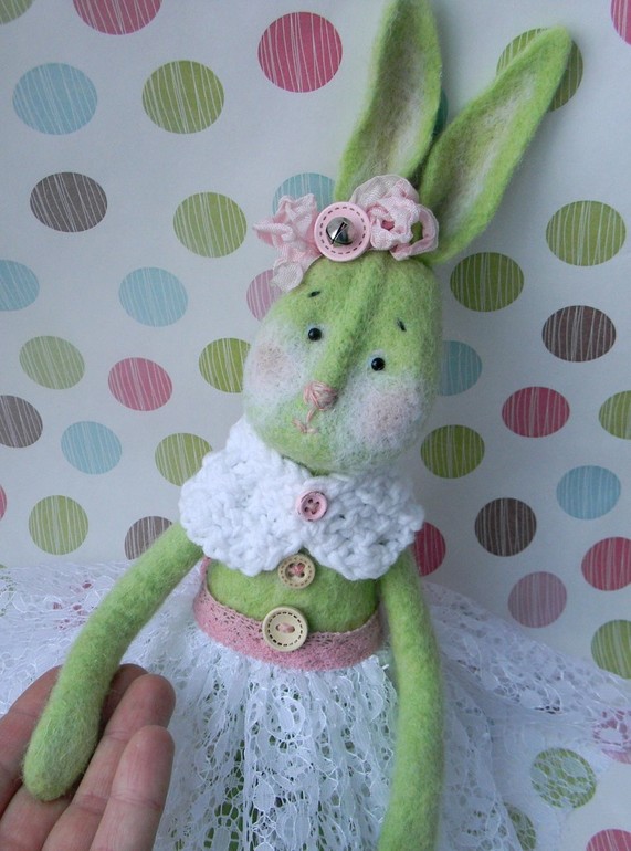 Игрушечный мир - животныеРождественская зайка из сказочного леса. Еще одна свалялась) Можно критиковать, критике рада. Голова на шплинте, поворачивается. Сделана в смешанной технике валяния. Неделю почти с ней возилась, но так понравилось, что надеюсь еще кого-нибудь осилить. Стало нравится валяние опять, хотя очень давно не валяла. Всех с Рождеством!!!
