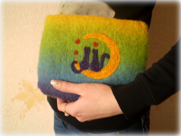 Вязание спицамиДобралась я в праздники до Ровницы Кауни. Расход 85 гр, размеры 21 см х 17 см, спицы №5, закрывается на молнию. Мой первый опыт в работе с такой пряжей, а также в сухом валянии при набивании рисунка. Связала большое полотно, затем валяла в машине при температуре 60 гр, в течение часа. Усадку клатч дал ровно в два раза , и по ширине и по длине. Зато получился очень плотный, даже твёрденький, толщина стенки 1 см, на ощупь как валенок))) 🙂 Просушила, и уже по готовому клатчу набивала рисунок из той же Ровницы. Очень увлекательный оказался процесс))) ☺️