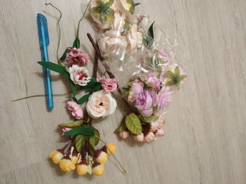 Две салфетки, одна диаметр 30см, вторая 42, и два пучка тычинок