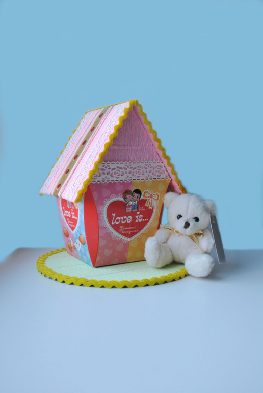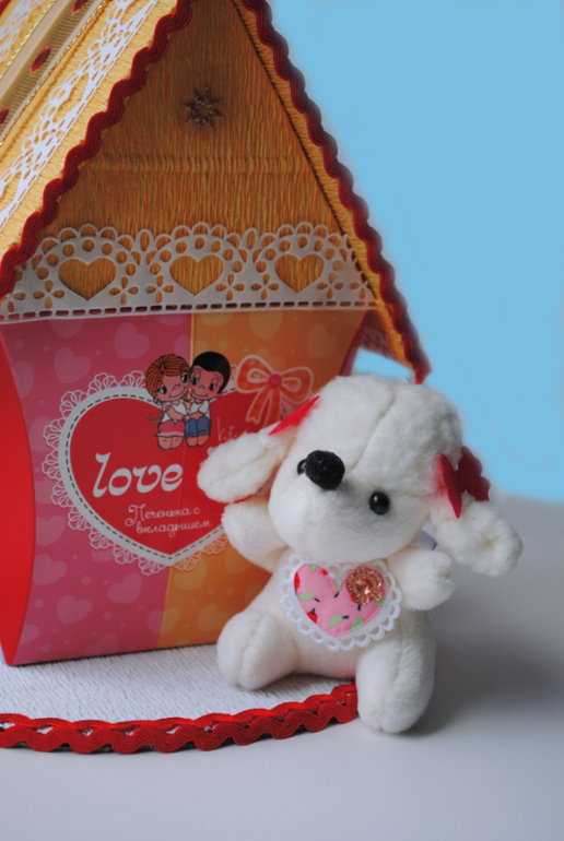 Наткнулась в магазине на коробочки печенек Love is... и родилась идея сделать из них домики. Коробочек купила три, но домиков удалось сделать только два, т.к. сын потребовал одну подарить ему на день св. Валентина.