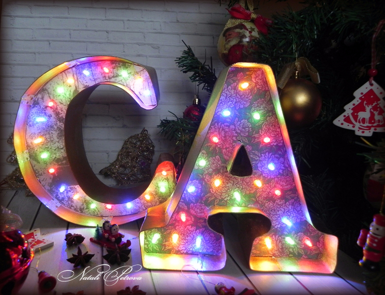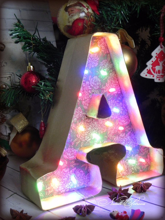 Вот такие два светильника получились. Они сделаны полностью вручную из картона. Буква "С" для сына, "А" - свободна. Если будут желающие - пишите, с удовольствием поменяюсь на что-нибудь интересное