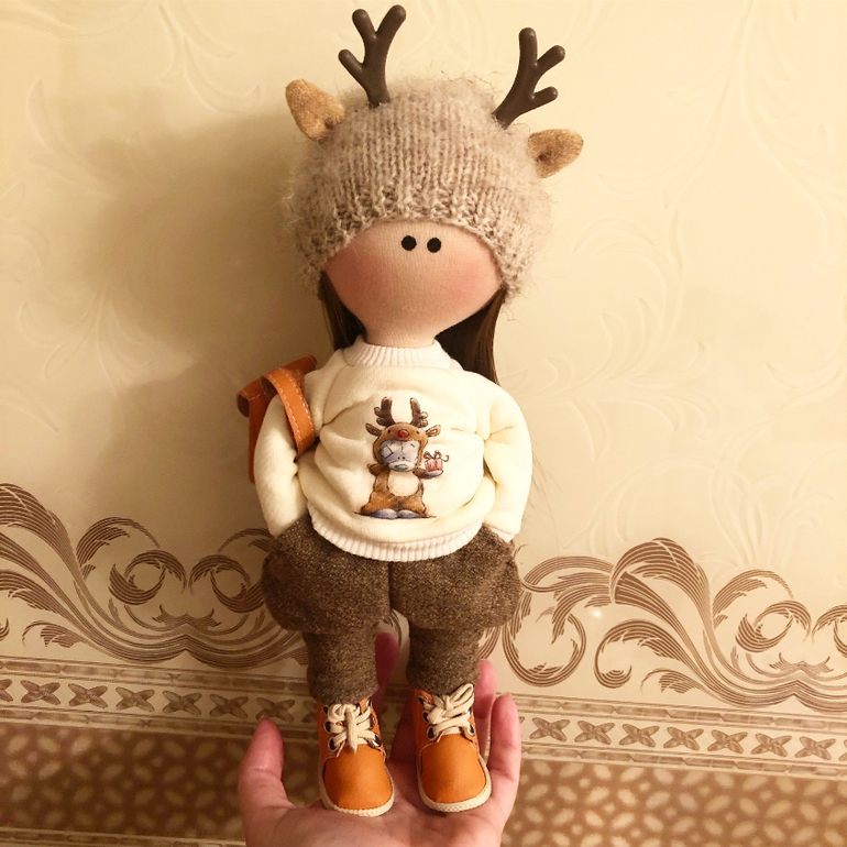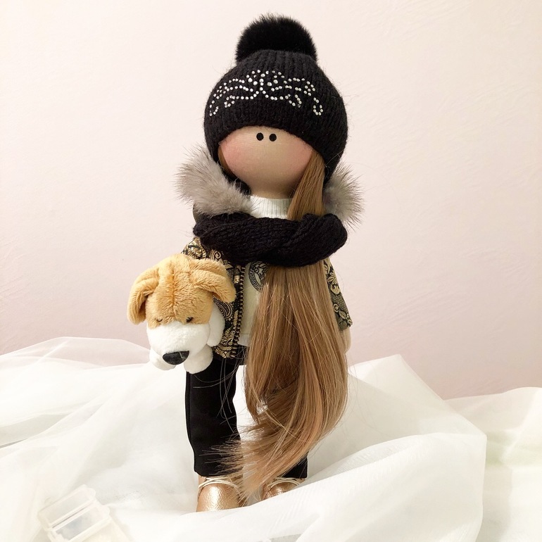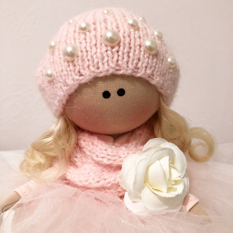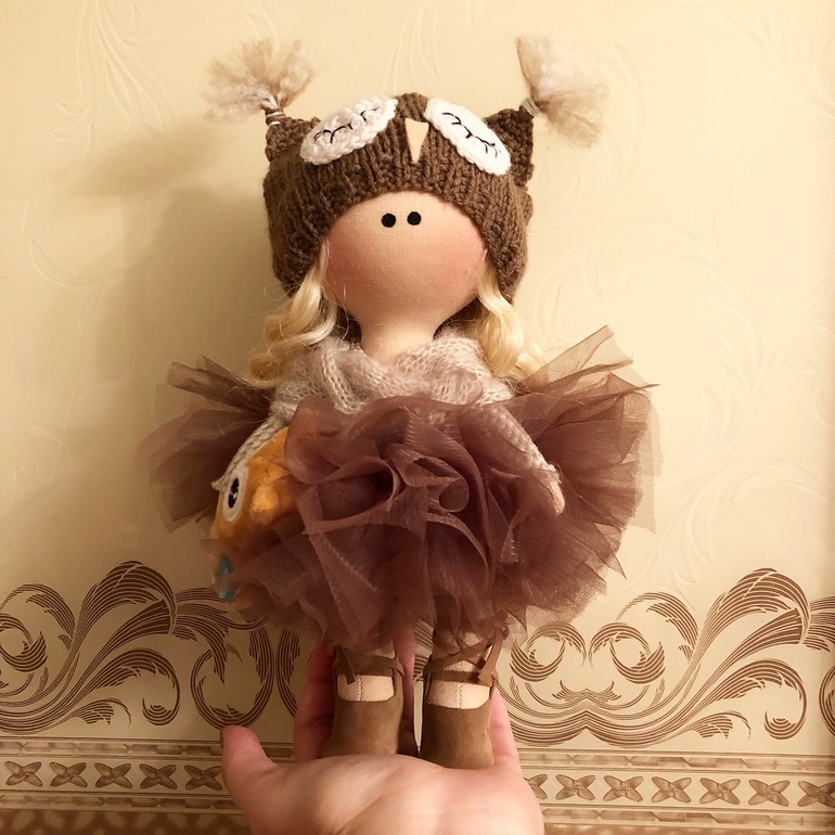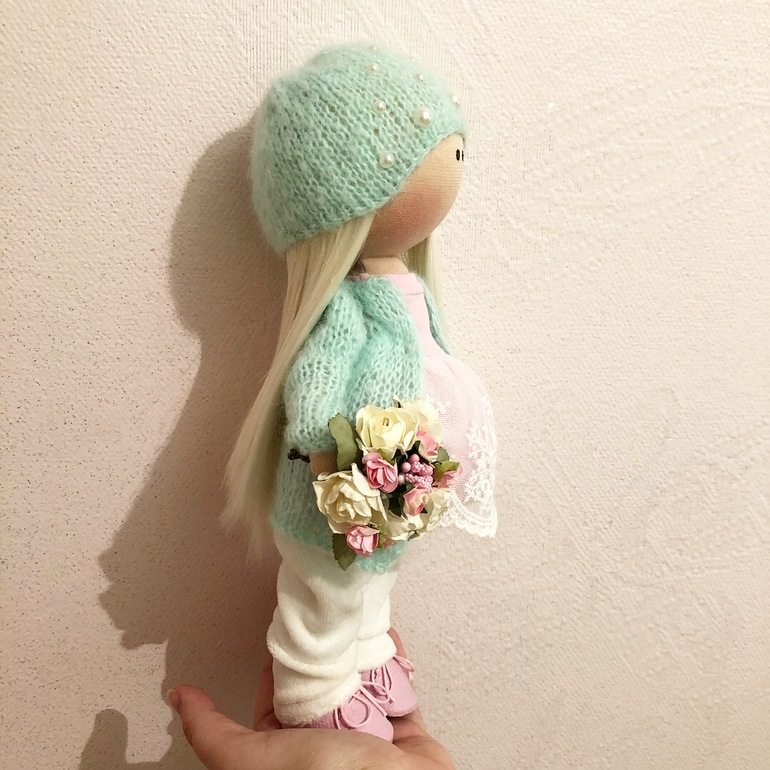 Куколка в бирюзово-оранжевой гамме. Лавандовая тильда