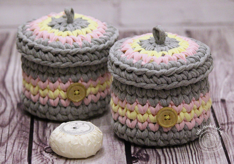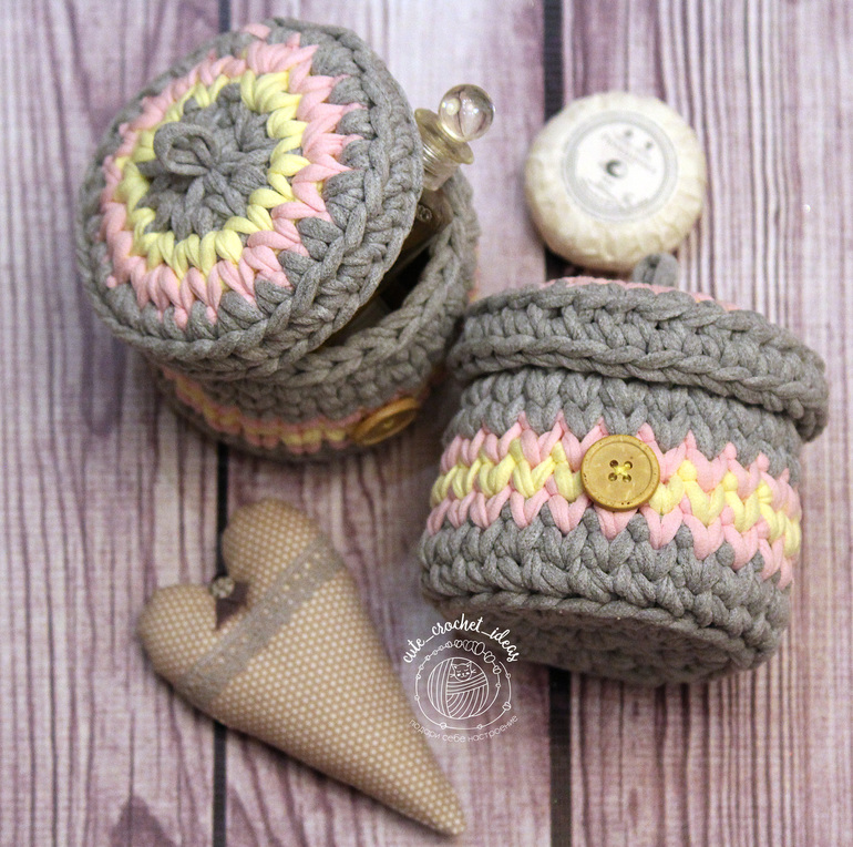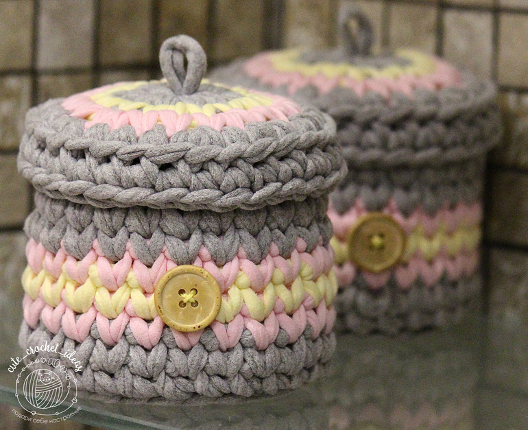 Вязание крючком (РАБОТЫ И СХЕМЫ)Две корзиночки для хранения ватных дисков и палочек, практично и удобно, проверено на кошках себе 🙂