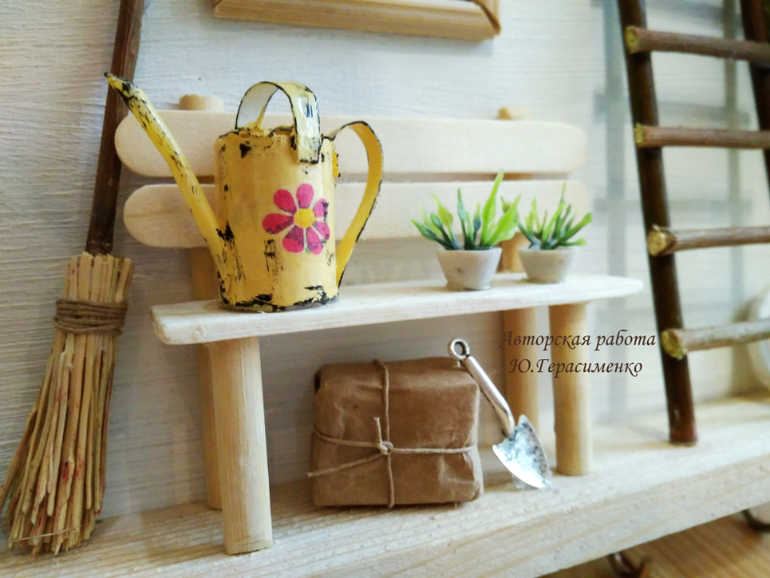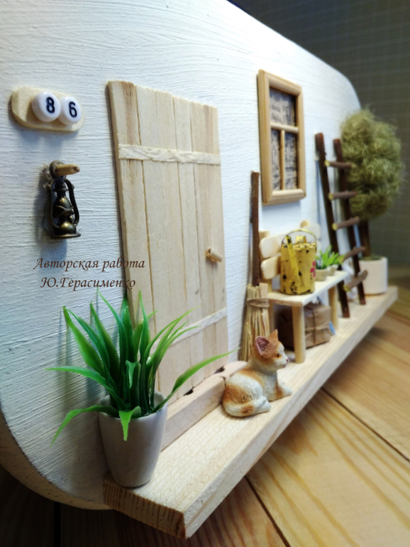 Ну, учитывая нынешние цены на материалы, то не дешевая работа - эту продала за 560. Повтор будет уже дешевле, 500 грн, т.к. нет фигурки кота и основа немного другая. Но хочу обратить внимание, что основа из дерева. Буду делать вот еще в форме домика, подешевле. Ну и в рамке видела мои работы?
