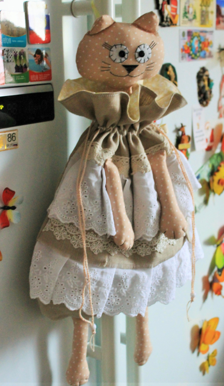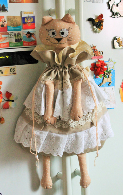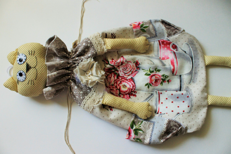 Эта кошечка Прованс, мешочек из рогожки (которая Прованс называется 😉 ), очень красивая ткань 😍 , украшена хлопковым кружевом и цветком из ткани