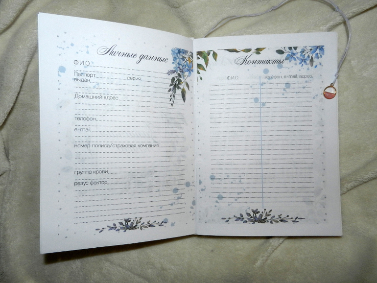 Толстенькая книжечкая в нежнейшем на ощупь кожзаме. Ее не хочется выпускать из рук..На форзаце карман для важных бумажечек. У девочек же всегда все на бумажках))) Красивучие скрепочки для закладок. Закладка с подвеской перламутровой и куча полезнейших страничек. Смотрите!