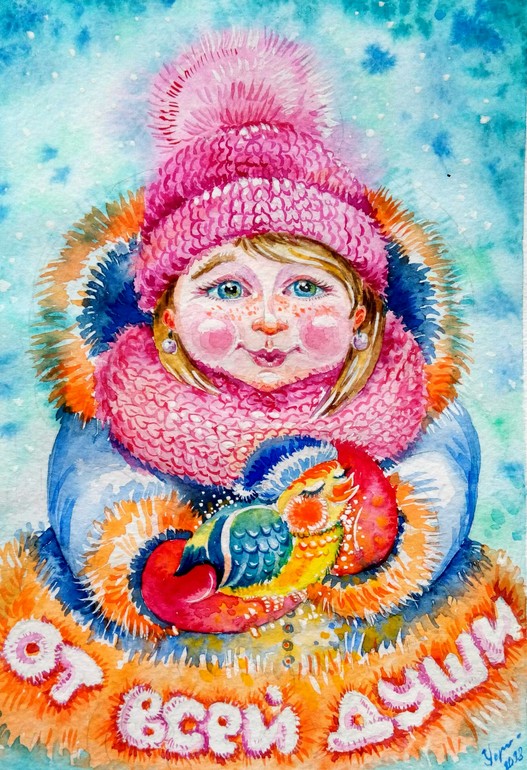 Нарисовала вот такую открыточку для одного очень интересного хорошего человека,для девушки,которая делает чулесные игрушки. Мы с ней не виделись ни разу в реале,поэтому на открытке решила изобразить себя)