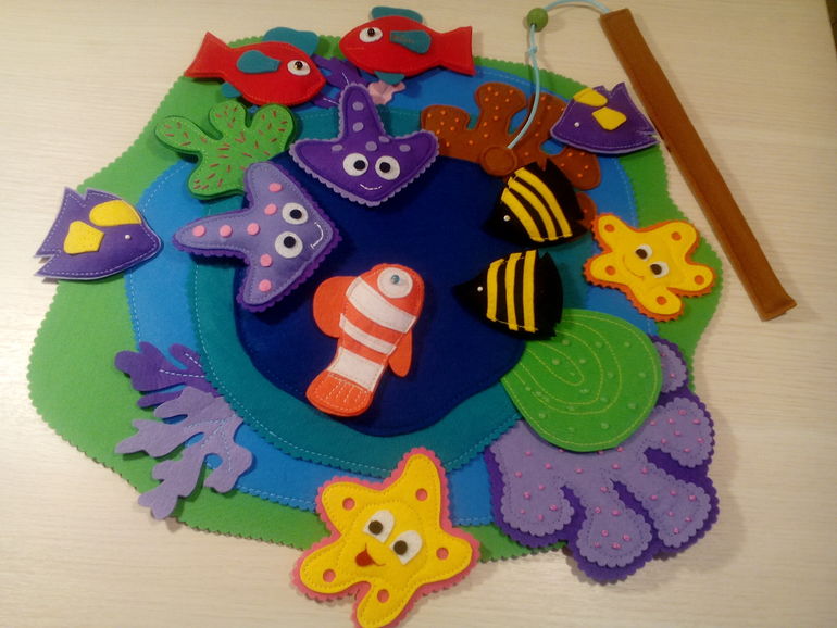 Девочки, хочу показать свою магнитную рыбалку из фетра. Теперь с двумя удочками, чтобы соревноваться и с друзьями и с мамой! 3 фото под катом. Магнитная рыбалка поможет развить много полезных навыков: глазомер, координацию руки, мелкую моторику. Играя,малыш учится концентрировать и удерживать внимание, запоминать цвета и осваивать первые навыки счёта. В каждую рыбку надёжно вшит магнит и для безопасности , игрушки прошиты двойной строчкой. Трогая Морские кактусы, малыш не только получает массаж пальчиков , но и знакомится с новыми тактильными ощущениями.