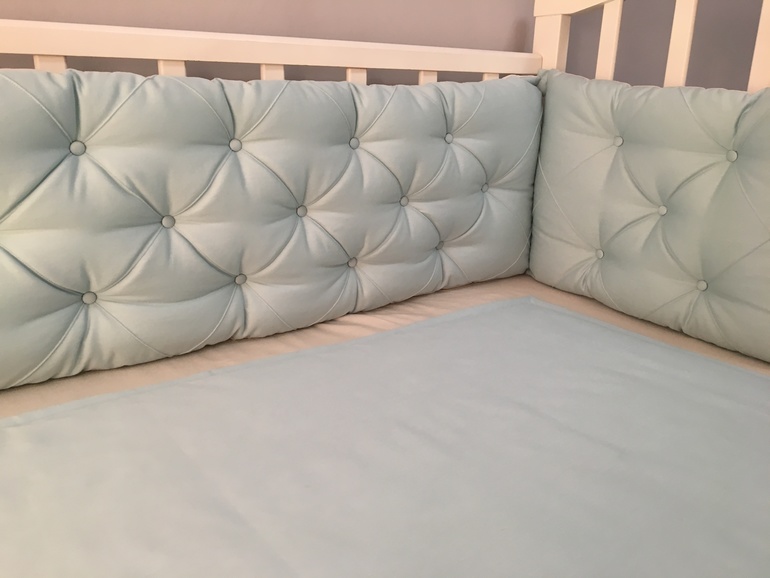 Очень красиво, но пуговицы в кроватке очень опасно, ребенок обязательно будет с ними играть, пытаться оторвать и засунуть в рот ..... а это чревато гибелью, к сожалению. Сами бортики уже не безопасны, а с пуговицами вдвойне.
