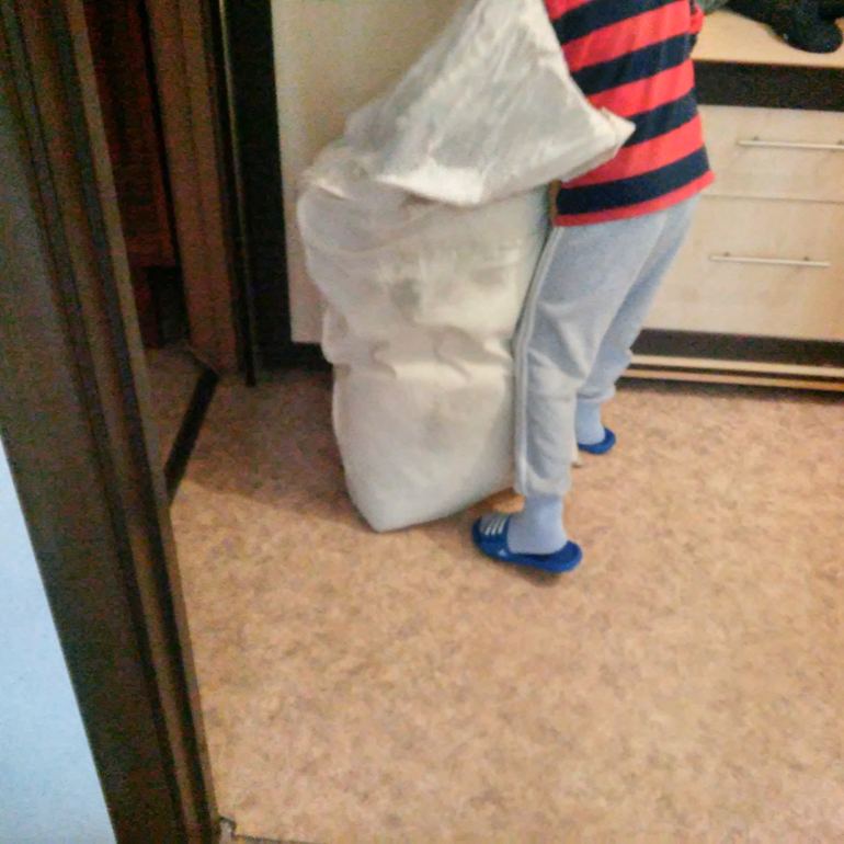 Мешок произвел фурор и первым в нем, естественно, был сын - практически с головой залез.
