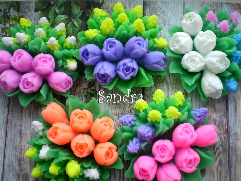 Мыло и косметика своими рукамиПохвастаюсь мыльными букетиками . Тюльпаны и мускари... 🙂