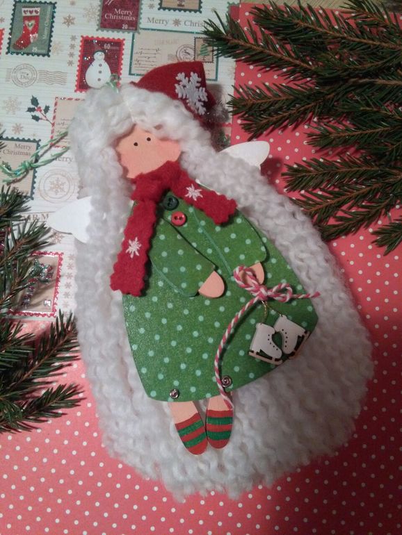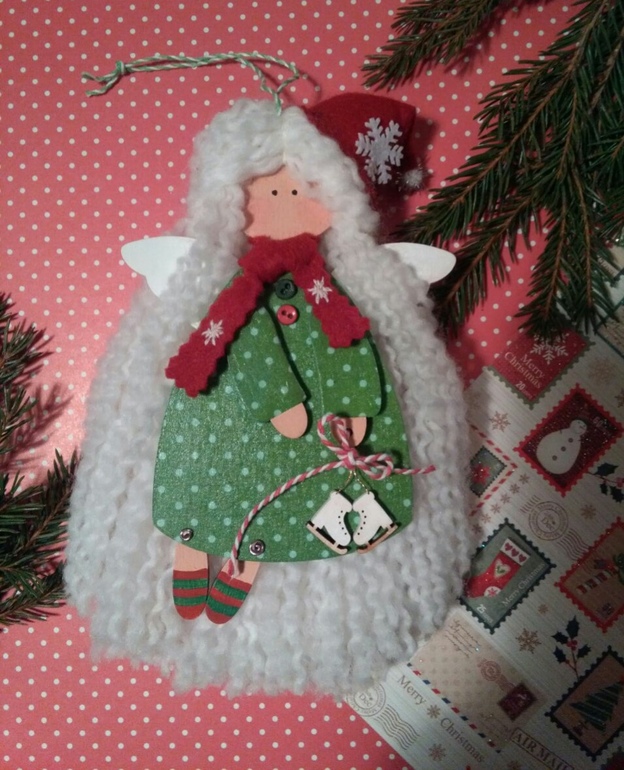 Это не первая моя куколка в стиле тильда, но фанерная и на основе техники декупаж. Весь костюм выполнен вручную, каждая ниточка прически пришита иголкой:). Ручки и ножки подвижны. Высота без головного убора порядка 16см.
