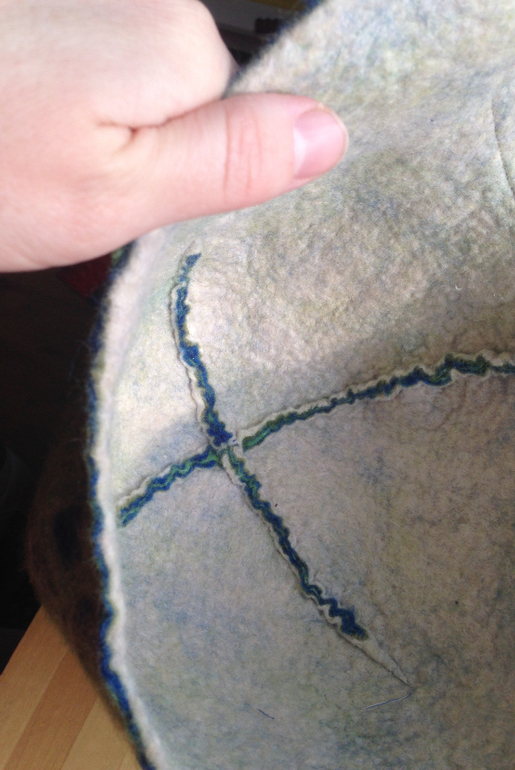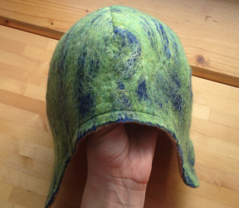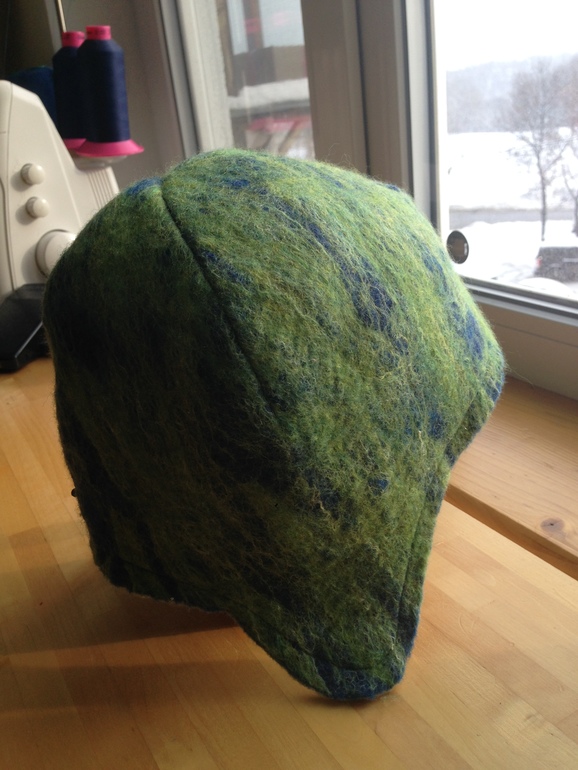 Было прошлым летом заготовлено войлочное полотно, первоначальной задумке оно не подошло, а вот на днях построила выкройку (за основу интернетовская конечно, но Детская, а строила взрослую) шапки и решила её на войлоке попробовать. И вот что вышло.