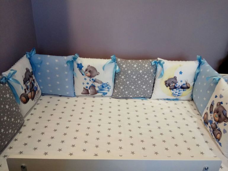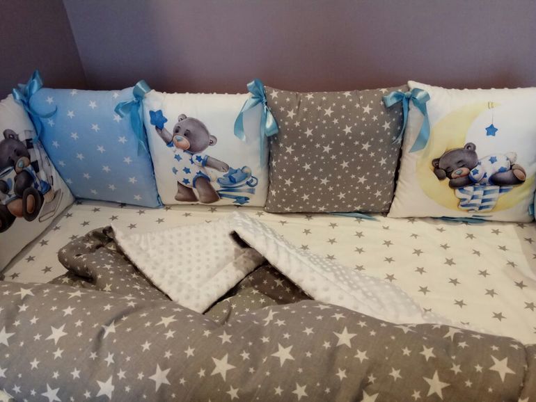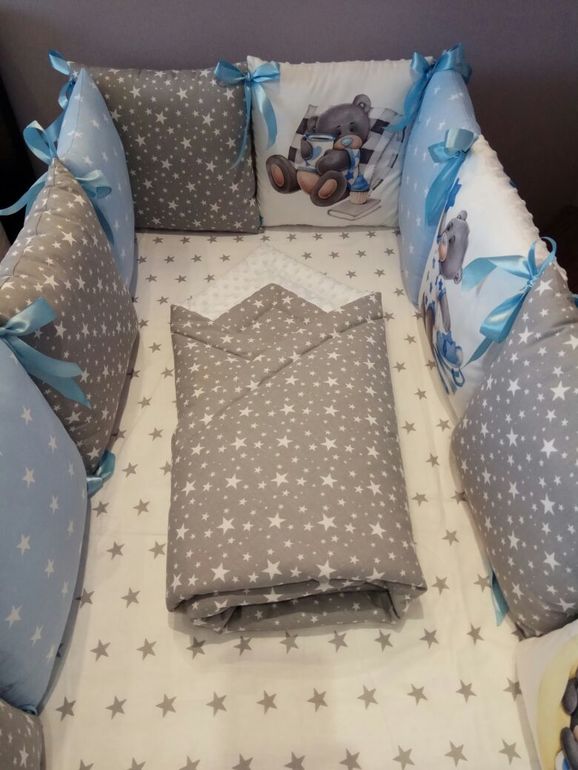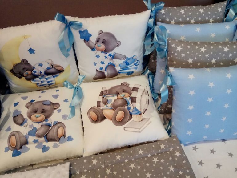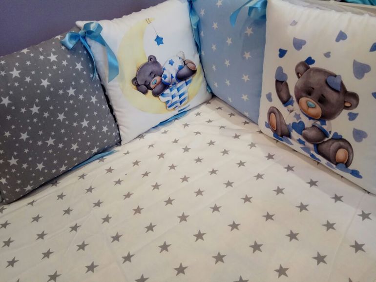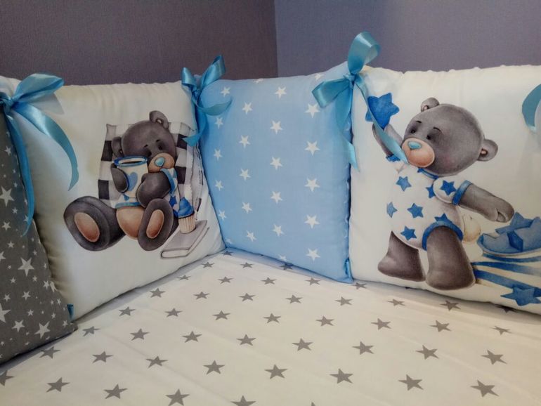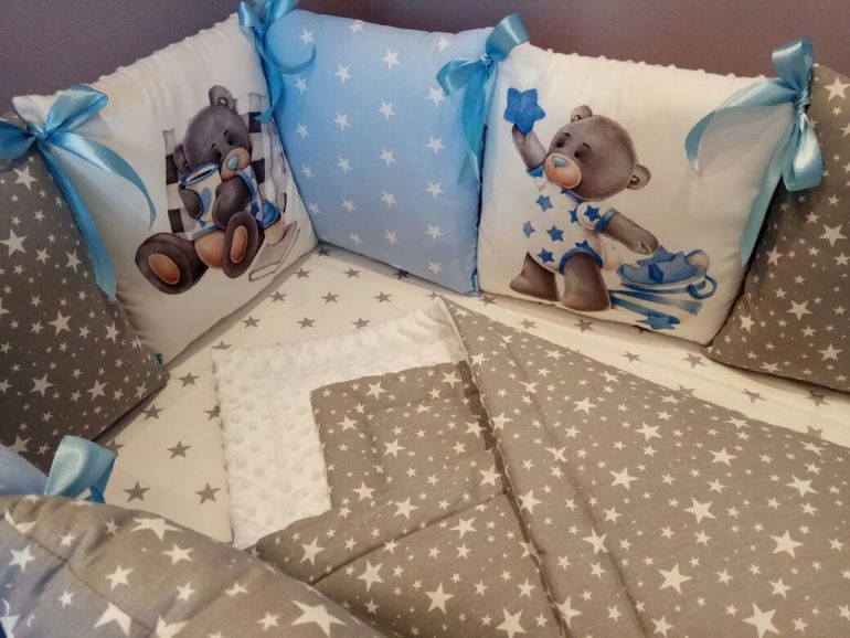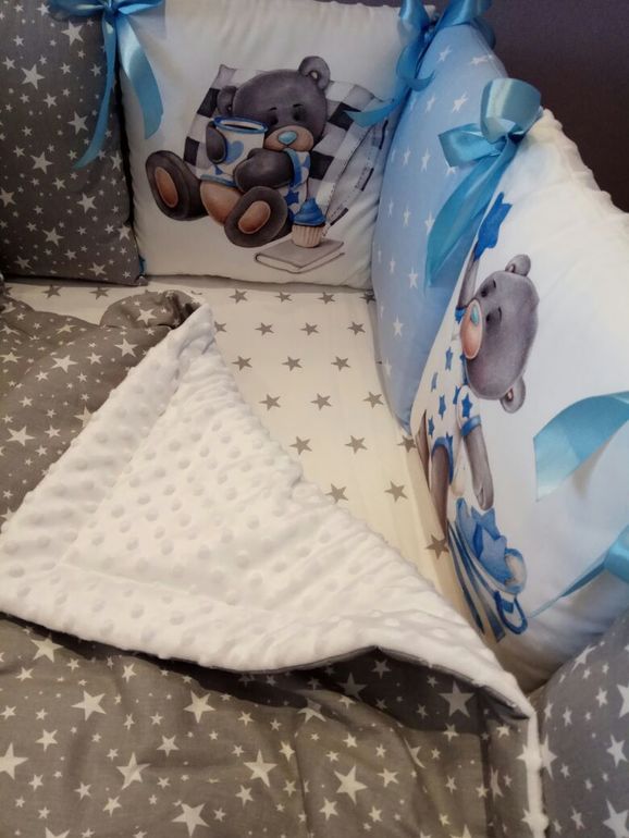 Шитье одежды, выкройки, ремонт одежды, шторы, швейные машины (уже приобретенные)Привет всем!) Хочу показать вам еще один комплект с мишками, на этот раз с голубыми) Мишки такие милые, не устаю на них любоваться)) ну и плюш белый очень нежный) ну и , Конечно, всеми любимые звездочки))) Под кат много фото!!!