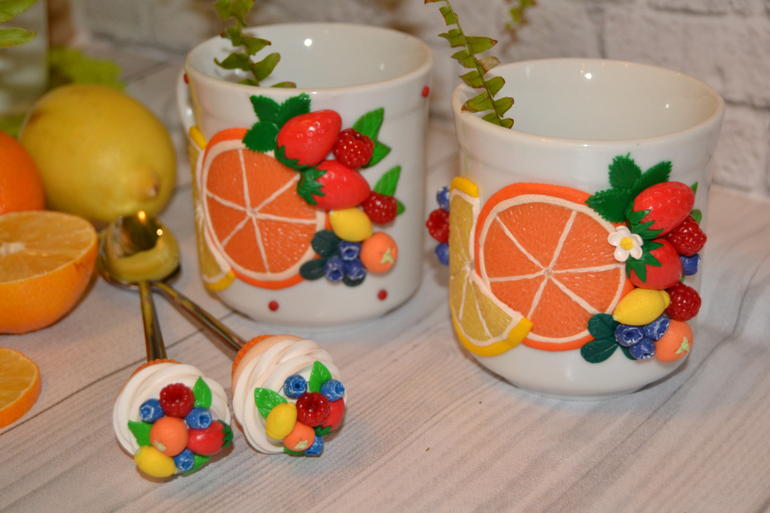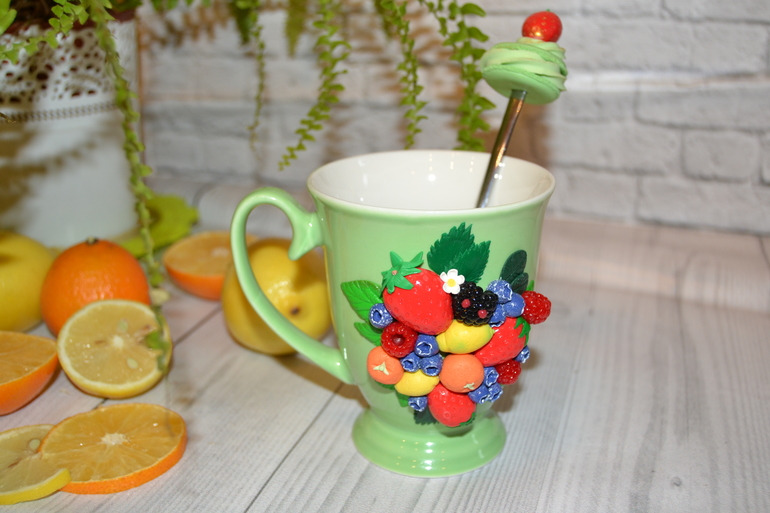 Лепка из пластики (полимерная глина) (ТОЛЬКО ГОТОВЫЕ РАБОТЫ)Как же я люблю лепить эти кружечки,фантазируй сколько хочешь,что не фигурка фруктика или ягодки,то в тему, всё равно -ярко, сочно, чарующе!