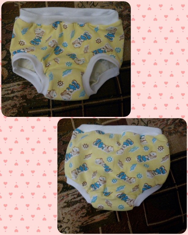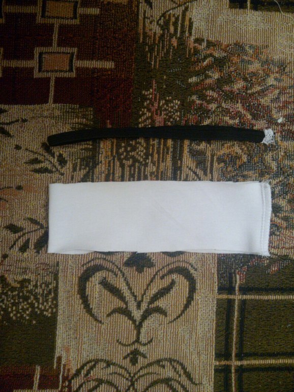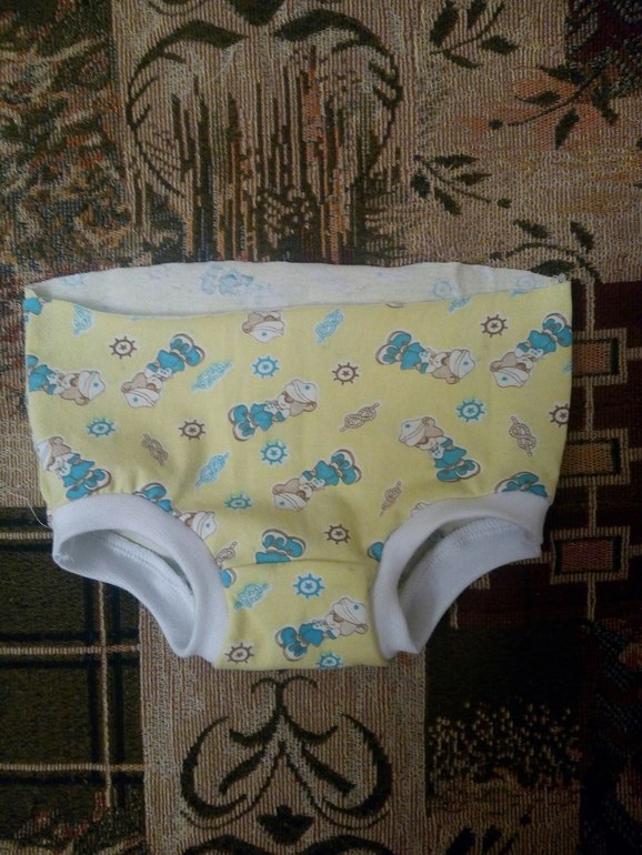 Сгибаем пополам и делаем надсечку, чтоб ровно пришить к боковым швам(с одного бока шов пояса, с другого бокового шва трусов - надсечка.