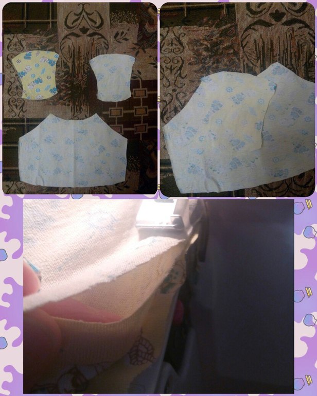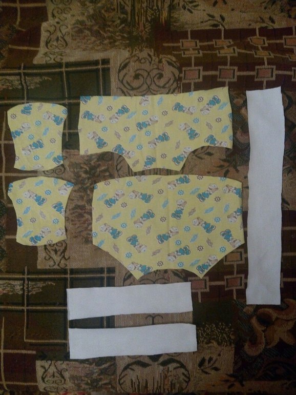 Какие детали мы имеем: две ластовицы, две манжеты для ног, пояс, передняя деталь, задняя деталь, резинка(на фото забыла положить).