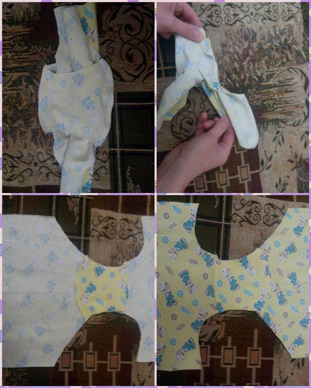 4. Теперь держим одной рукой ластовицы, а с другой стороны достаем детали трусиков.