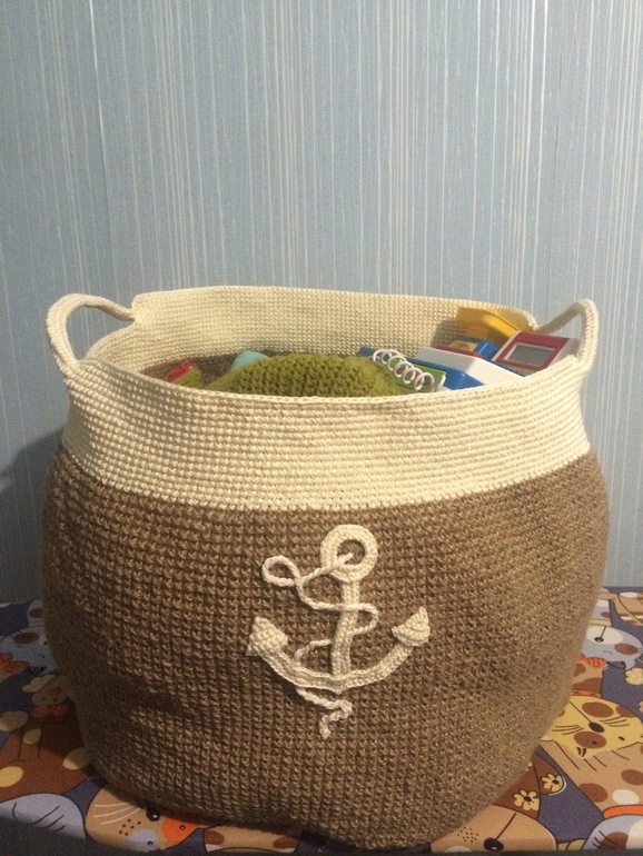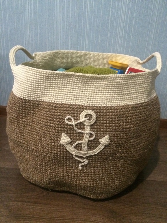 Обалдеть!!! Какая прелесть!!! ДА, проблема у всех, игрушки уже складывать некуда, а их всё мало и мало! А корзина сама по себе такая красивая, такая вязочка аккуратненькая!!!
