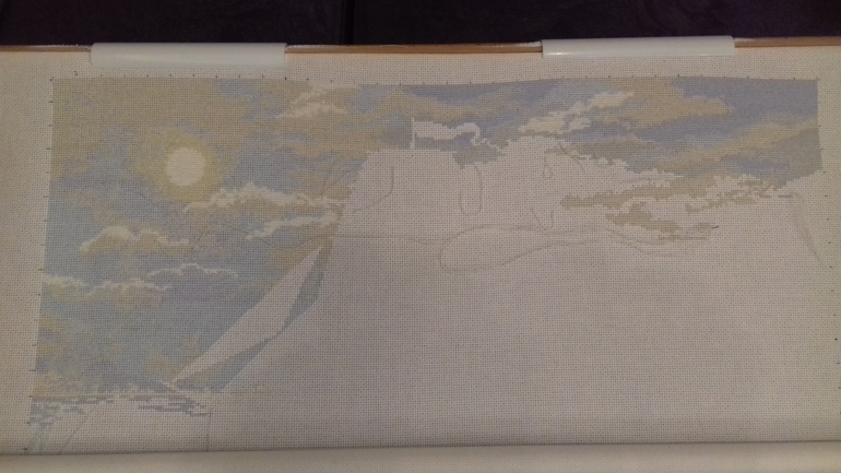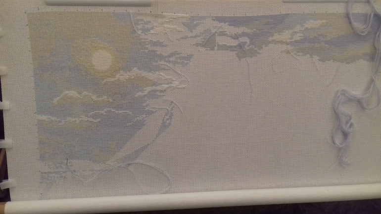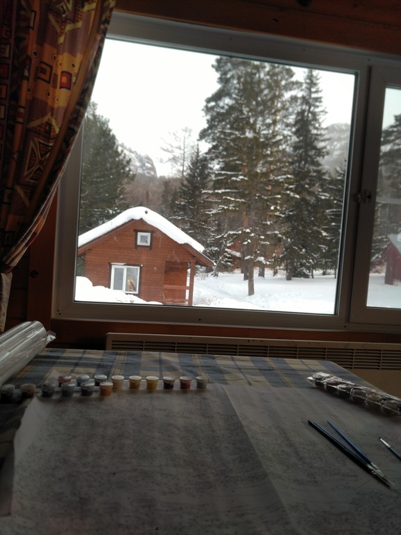 Я начала раскрашивать картину с морским пейзажем (где-то в сумках лежит ещё, недогадалась сфотать)