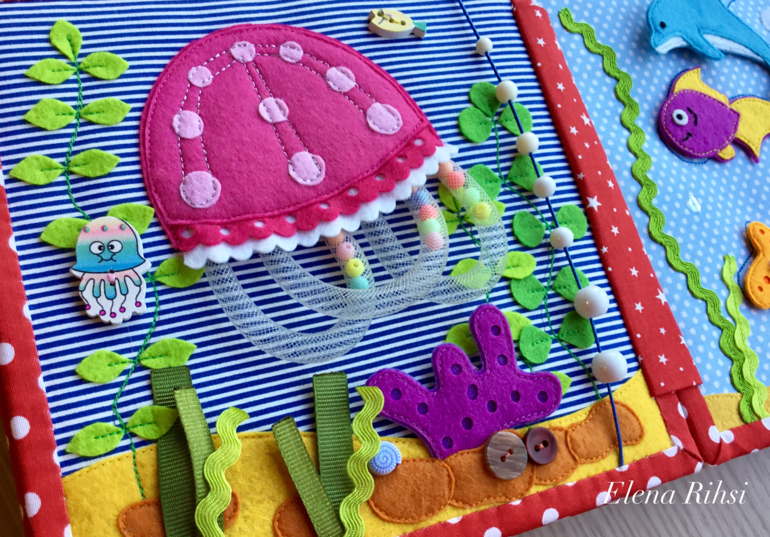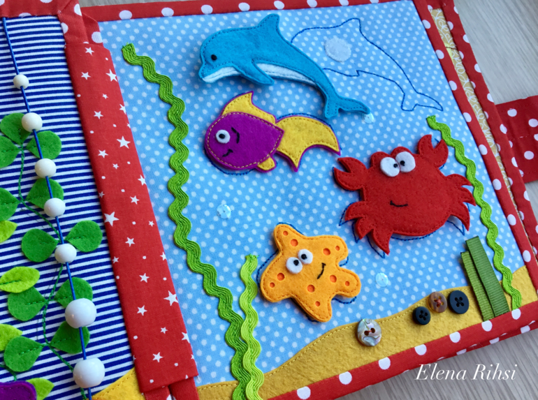 Развивающие игрушкиРазвивающая книжка рассчитана для малышей от 1 года. Сшита из фетра и ткани.