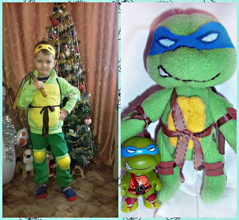 Из серии : вижу цель - не вижу препятствий:) Чего только не сделаешь для самого любимого мужчины на свете:)У меня растёт любитель черепашек нинзя, сказал " Хочу костюм черепашки нинзя на НГ,"- мама смастерила, попросил сшить черепашку - мама сшила:) , на ДР торт с этими черепахами сделала, попотела, но сделала:)