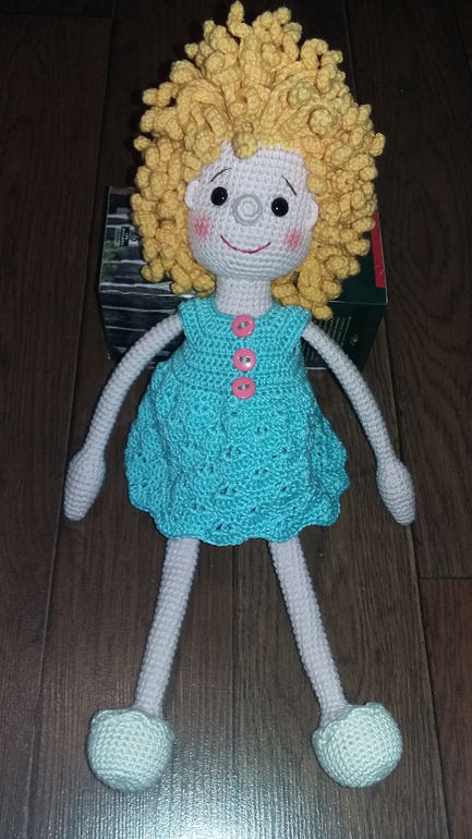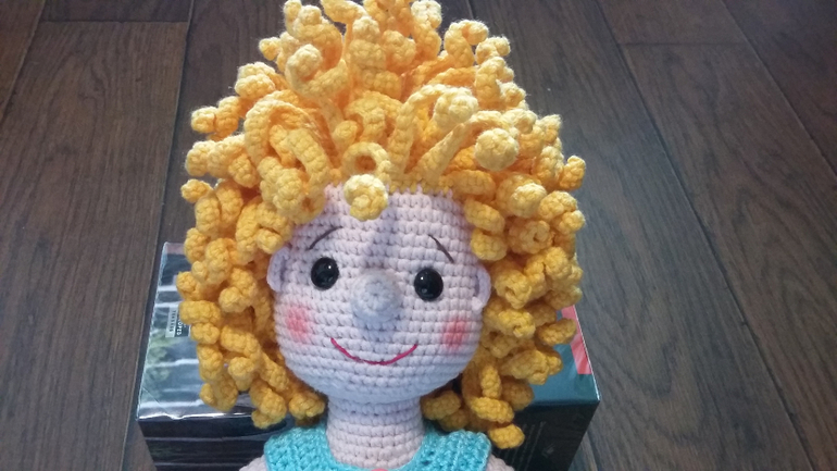 Ну а это просто МОЯ любовь и восхищение !!! Хоть дочка с ней играет, но я сама ее часто "тискаю". Ну какие же у нее волосы.. это просто тактильный восторг !!!. Там стоооолько труда с этими волосами, что караул. Но оно того стоит. Как же они мне нравятся. Катюша нам для подарка подружке сына уже как-то вязала и тогда я в нее влюбилась ))) И теперь она и у меня есть. Потрясающая куколка. Один сплошной ВОСТОРГ.