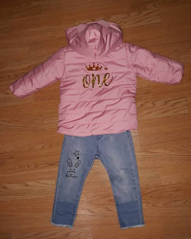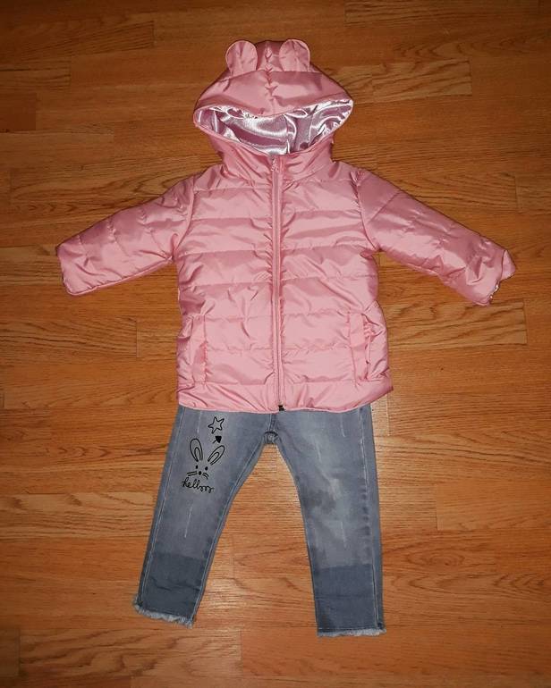ткани было не много и лишь розовая,по этому пришлось разбавить однотонность красивым термотрансфером.Верх куртки- Дюспо, утеплитель синтепон 100, подклад атлас.