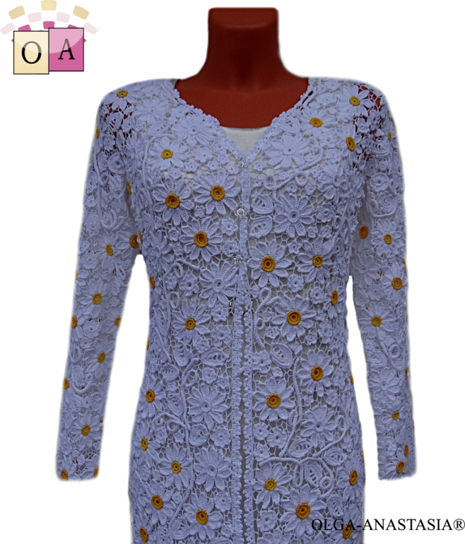 Ирландское кружево. Кардиган Веселые ромашки.