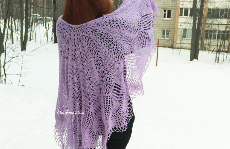 Ой, как давно тут не была) Собственно, и не вязала я тоже давно.. Покажу законченную на днях шаль «Султан». Уже выполняла такую, но в сером цвете и из другой пряжи.