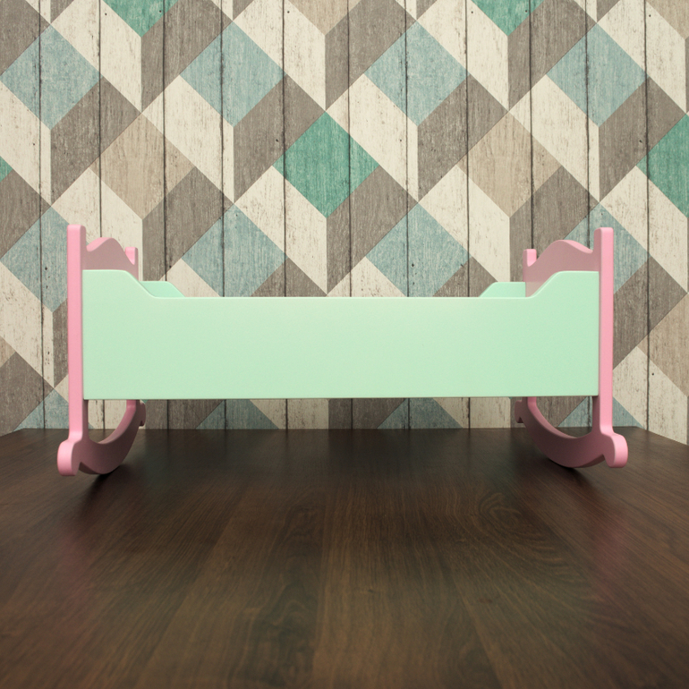 Получилась замечательная кроватка для кукол до 47 см, маленький ребенок может и сам в ней покачаться (полуторогодовалый сын уже опробовал))). И что очень важно кроватка не перевернется - есть ограничители качания.