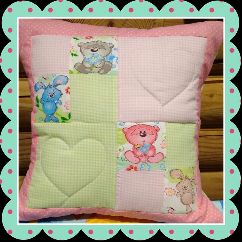Пэчворк и квилтингУвидев мое новое увлечение пэчворком, подружка попросила меня сшить для ее маленькой племяшки одеяло и подушечку с каким-нибудь детским рисунком. Ткань выбрали вместе, и работа закипела))) Подушка сшилась довольно быстро - за 4 дня. (Так как я начинающая швея, для меня это очень даже быстро). А вот с одеялом наверное придется повозиться подольше.