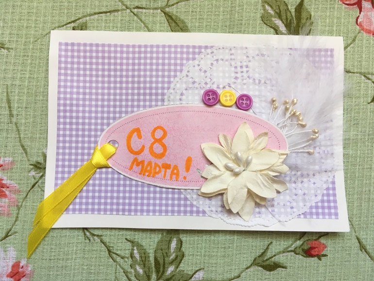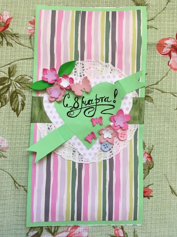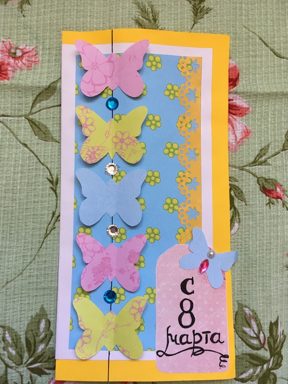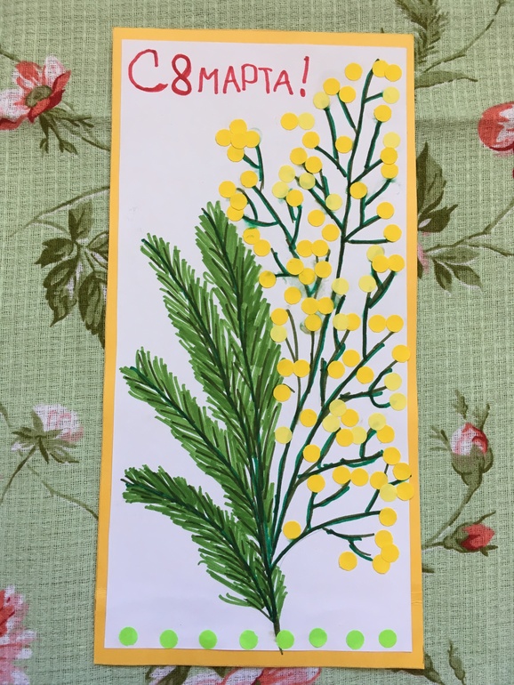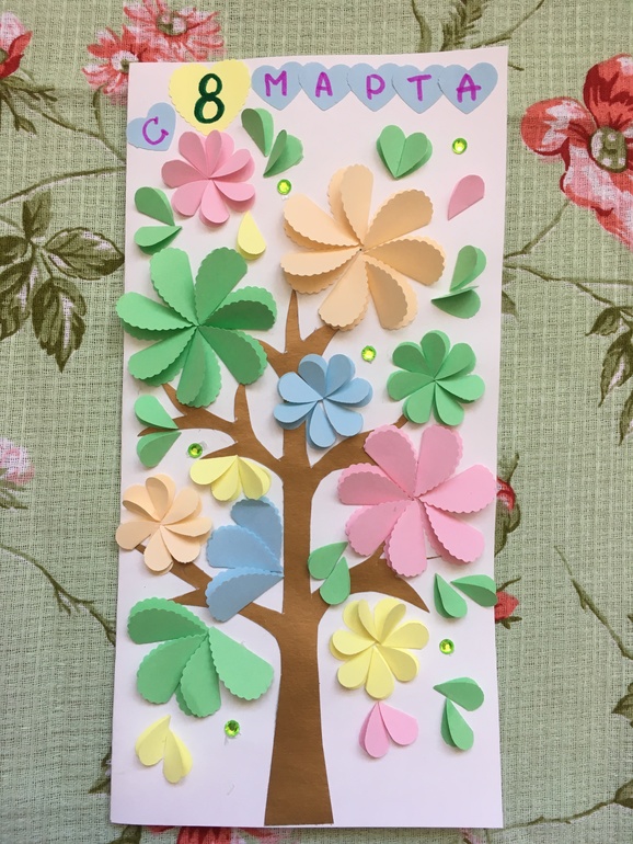 Поделки с детками.Близится 8 марта, и мы для наших бабушек, теть и воспитателей начали делать открыточки