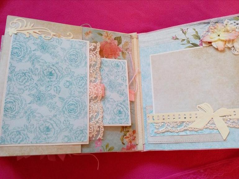 Альбом для моей доченьки на возраст от годика до трёх. Вмещает много фото и очень-очень нежный получился. Цветовая гамма просто замечательная ))