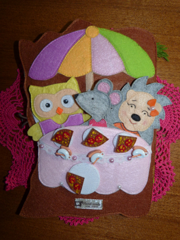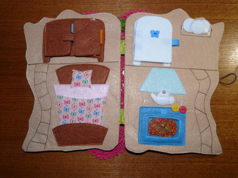 ФетрЗдравствуйте, девочки ! Давно, в интернете увидела очень красивый домик - дерево. Вдохновившись, сшила, но мой вариант очень - очень упрощён. Получился милый домик для совёнка. Размер 15 см./ 20 см. В домике имеется спальня с кроватью и шкафом, кухня с плитой и холодильником, а на задней часть домика - веранда с большим столом для гостей. Упакована книжечка в сумочку. Подробности и много фото, более 5, под катом.