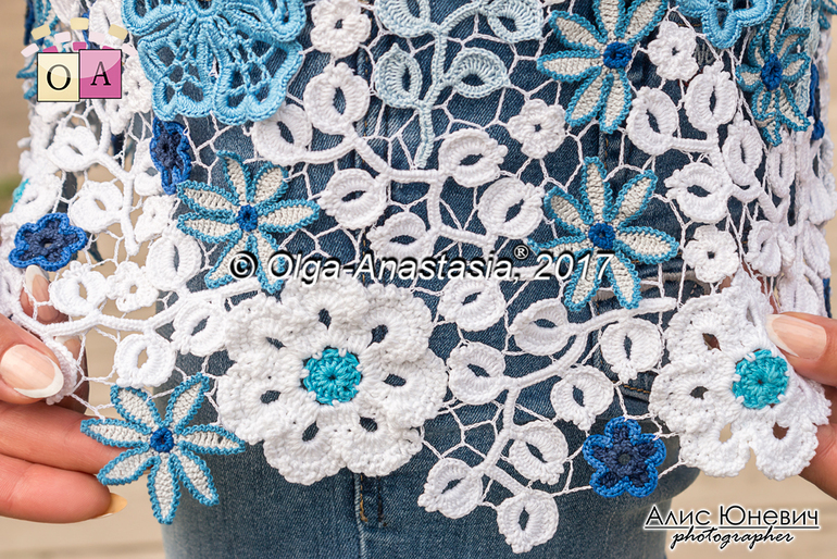 Ирландское кружево. Топ "Гжель в подарок",авторская работа