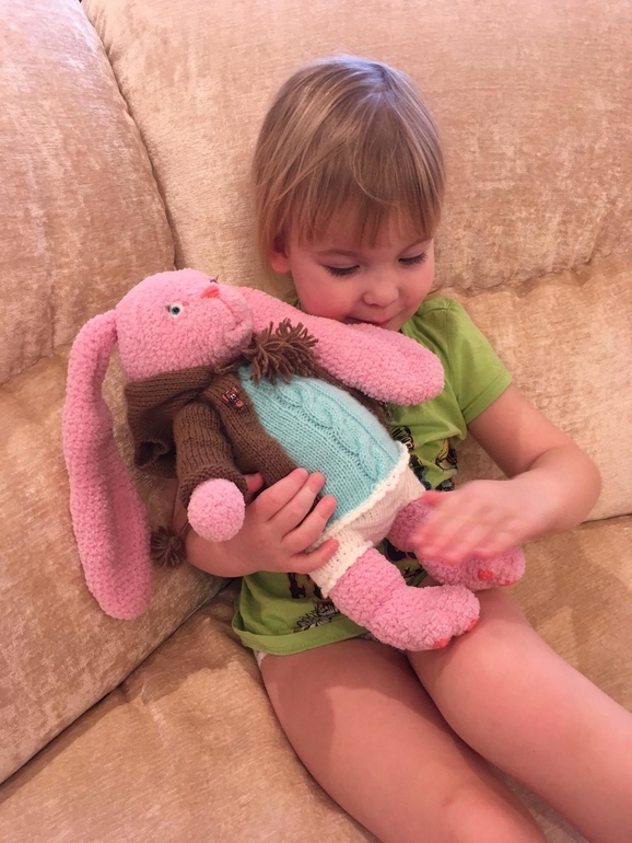 Зайка связана из Alize Softy, одежда ( пальтишко, платьице, панталончики) съёмные! набита игрушка холофайбером. Рост 35 см.