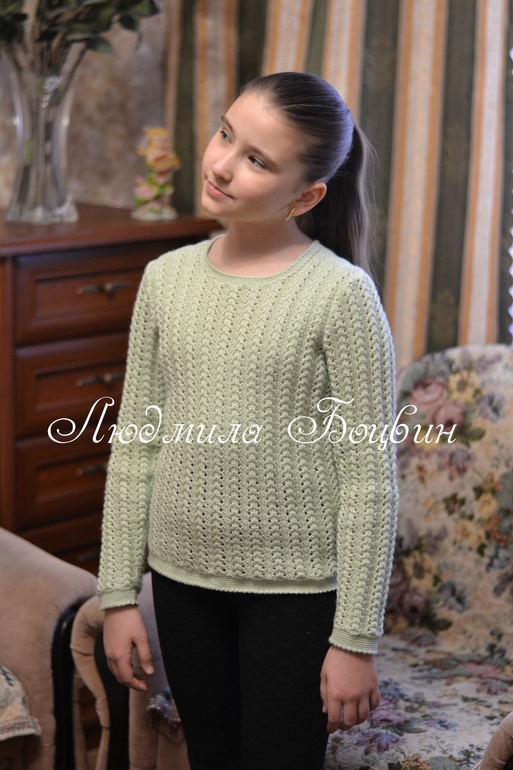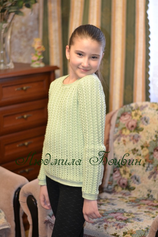 Джемпер вязала спицами № 3.5 в 6 ниточек.