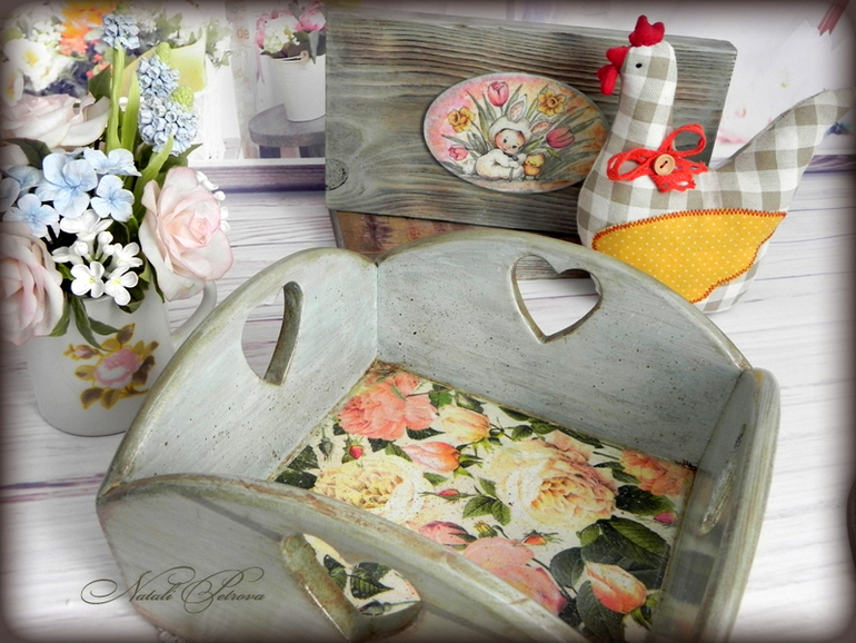 ДекупажДрузья, время просто несется галопом. Недавно праздновали Новый год и Рождество, буквально вчера поздравляли наших мужчин с праздником, да и наше любимое 8 марта позади. Впереди светлый праздник Пасхи. И по этому поводу у меня готовы целых два набора. Сегодня покажу первый. Это сухарница и пока панно, но оно скорее всего превратиться в ключницу. Обе заготовки из массива сосны.