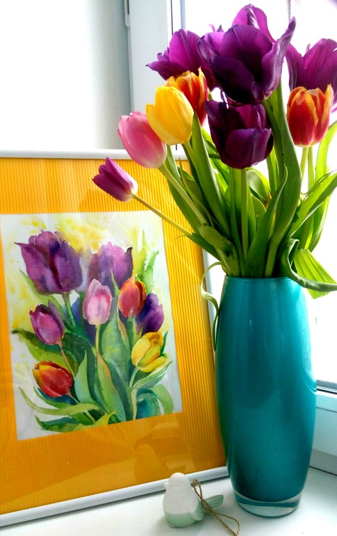 Вот они, мои восьмомартовские цветы! Просто не смогла не написать их,еле от кота уберегла, ито нижние листья успел погрызть))
