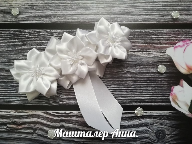 Цветы из ткани и форма. Канзаши. Украшения для волос.Больше сейчас вяжу,но иногда так хочется сделать бантиков для волос.Вот немного посидела над лентами и делюсь своим результатом .Под катом 5 фото .Простые школьные бантики.
