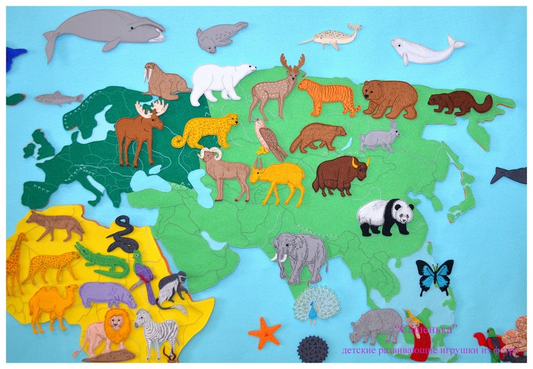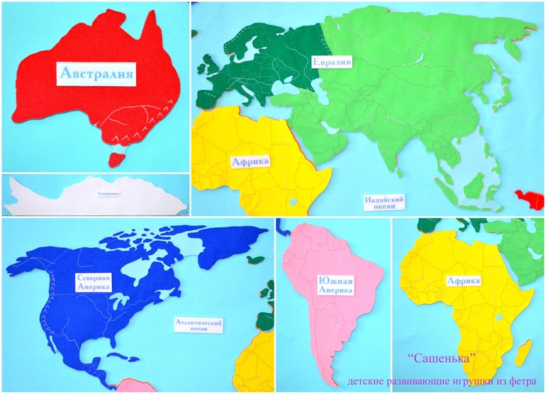 Материки и острова - съемные элементы, каждый из которых имеет определенный цвет