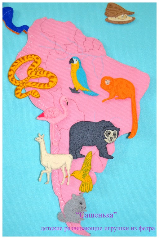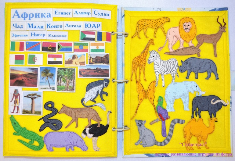 на 7 разворотов!!! Страницы папки, как и сама карта, выполнены из велкроткани. Каждый цвет страницы соответствует определенному материку и океанам, а съемные элементы распределяются по "своим" страничкам))