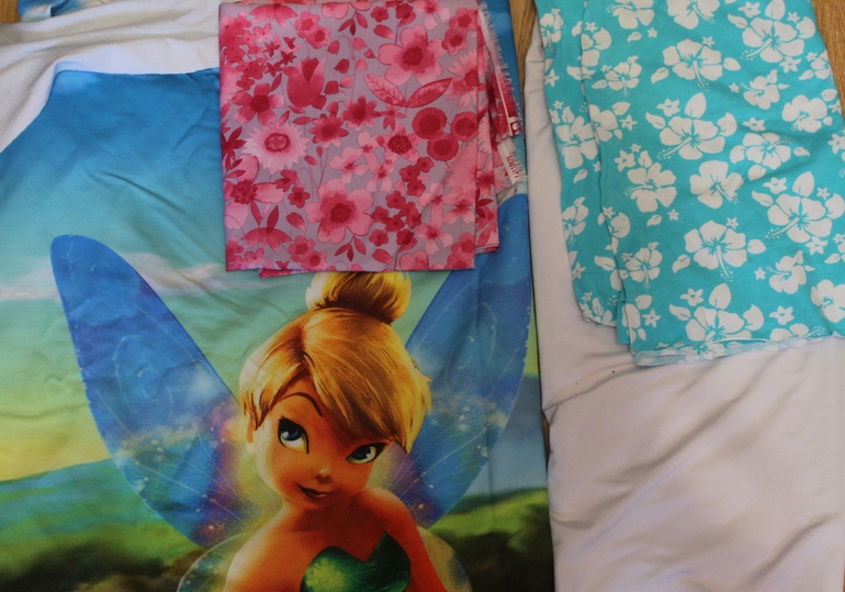 Это будут обновки для моей принцессы: плащик с розовыми цветами, толстовка с динь-динь, и лосины белые с туникой бирюзовой.