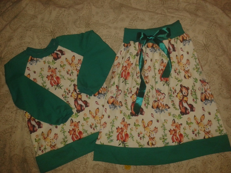 Юбочка макси, да и кофточка тоже. за счет эластичного пояска будет в пору очень долго.